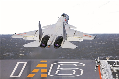 除了斜板滑躍起飛,艦載戰鬥機飛行最難的是摸索出一條符合我軍特點的着艦航線。