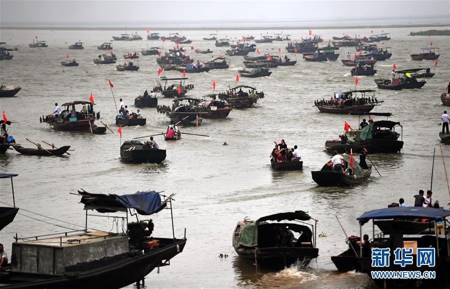 6月20日,鄱陽湖為期3個月的春季禁漁期結束,江西省餘干縣漁船駛出康山鄉鑼鼓山碼頭,進入湖區捕撈。新華社記者 萬象 攝