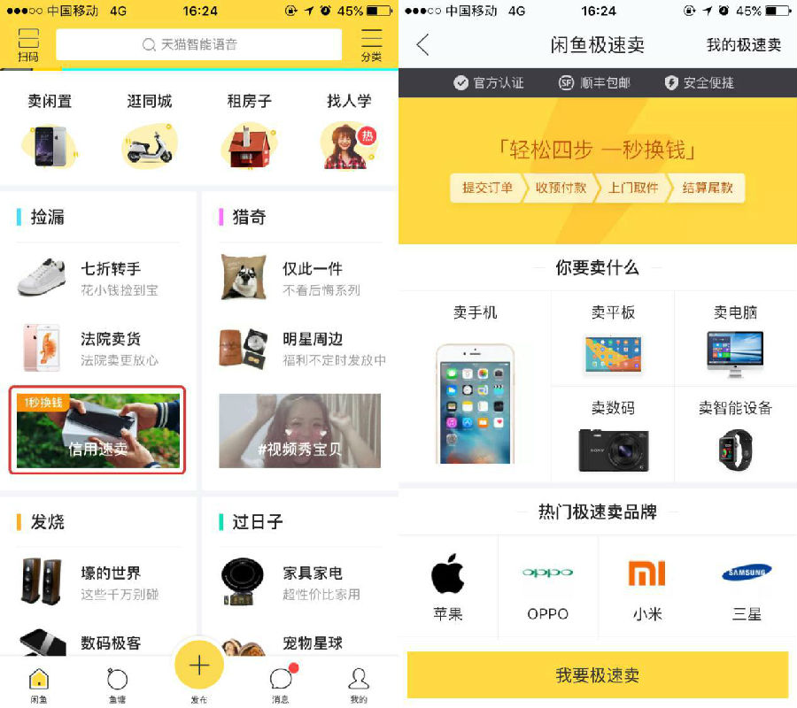針對這一情況,閒魚上線了“信用速賣”服務,在C2C平台中衍生全新的C2B模式,閒魚官方以企業的身份對C端消費者的閒置物品進行回收,並且打通芝麻信用體系。
