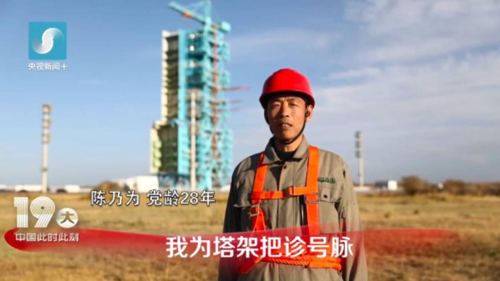 陳乃為,51歲,甘肅酒泉衞星發射中心運輸修理站高級技師,檢修塔架30年,每次檢修螺釘10萬餘個,黨齡28年。“我為塔架把診號脈,為航天事業保駕護航”,這是他的黨員誓言。