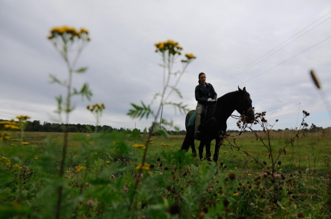 莫斯科郊外125公里,皮衣軍褲、黑髮長靴的瑪利亞利落地翻身上馬,雙腿輕巧一蹭,名叫“蒼穹”的俄羅斯快步馬衝將出去,烏黑色的光亮鬃毛在風中飄揚。