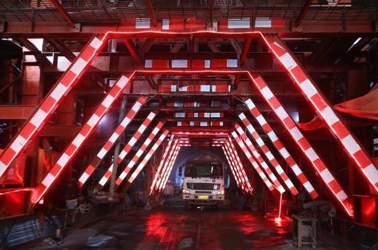 2017年8月21日,工人在河北省張家口市赤城縣龍關鎮境內的京張高鐵崇禮支線鐵路太子城隧道入口施工。 東方IC 資料
