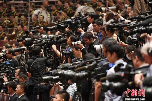 10月18日,中國共產黨第十九次全國代表大會在北京人民大會堂開幕。中外記者關注大會。中新社記者 毛建軍 攝