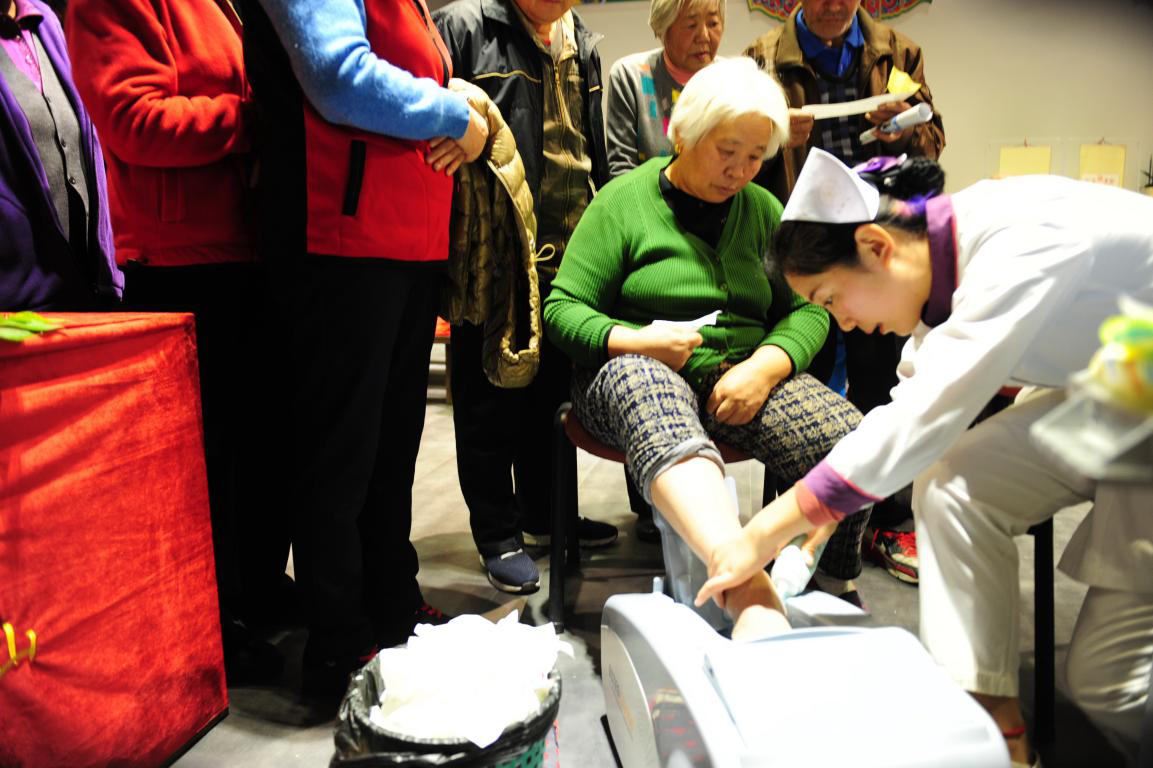 活動當天,主題服務活動服務範圍從原來的80歲以上老人擴大到了60歲以上老人,並通過三個版塊的安排,進一步落實扶老、助老工作。第一,設立醫療營養服務區,由光明山老年公寓醫護人員、餐飲人員聯合為老人推出健康檢測、中醫脈診、營養膳食指導服務;第二,記錄精彩瞬間,由三段錦高端婚紗攝影為高井60歲以上老人提供專業攝影服務;第三,設立愛家展示區,重點展示高井老人源自生活的豐富多彩的文藝作品和來自他們的很有紀念意義的禮物。
