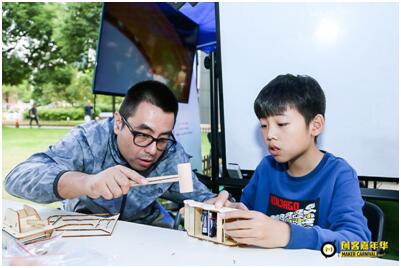 在本次2017上海創客嘉年華中,超過半數的展商都將目光放在了兒童科技教育領域,不少展商還特別安排了親子互動環節,通過親身參與從而讓孩子們體驗到“玩”科技的樂趣。來自舟山市定海小學的小創客們與躍躍欲試的小朋友一起合作完成了“DIY MP3播放器”、“聲控黏土套件”等創意作品。此外,科技感十足的電子積木、考驗動手能力的木藝、衍紙也吸引了大批親子家庭的駐足參與,親子聯合於現場呈現出了大批優秀的小作品。