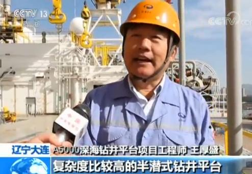 *A5000深海鑽井平台項目工程師 王厚盛:*第六代鑽井平台集成了當今海洋工程領域最複雜的產品,五年以前中國造這種第六代,複雜度比較高的半潛式鑽井平台,需要很多的外國專家,進行指導進行支持。