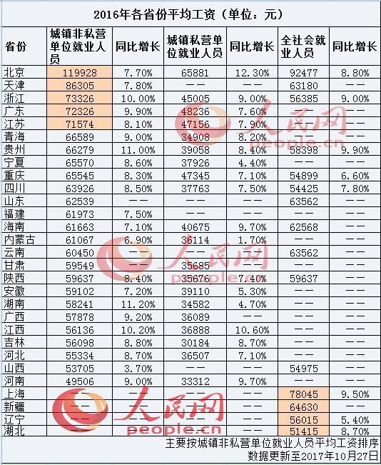 29省份2016年平均工資出爐 北京以年入近12萬居首