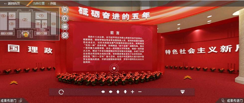 項目負責人介紹説,“砥礪奮進的五年”大型成就展網上展館,分為線上數字館和線下互動體驗館兩部分。在設計製作上打破了傳統平面網頁的表現形式,採用OpenGL技術標準,不需要網民安裝插件,只通過瀏覽器就能看到360度全景展示的效果,帶來身臨其境的觀展體驗。利用圖文、音視頻、三維模型等深度資料,對重點展品進行延展和補充解讀,加強了可視化網絡的互動體驗。