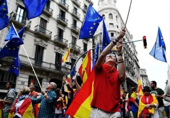 在加泰羅尼亞地區,各項民調顯示反獨的民意基礎要多於挺獨一方,從“獨立公投”風波中接連爆發聲勢浩大的反獨立遊行示威活動就可見一斑。