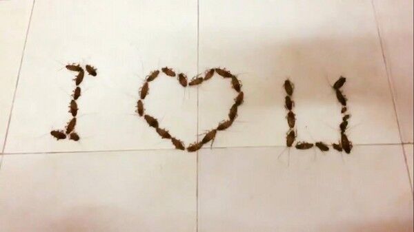 越南一大學生抓38只“小強”排I Love U告白 稱象徵堅強(圖)