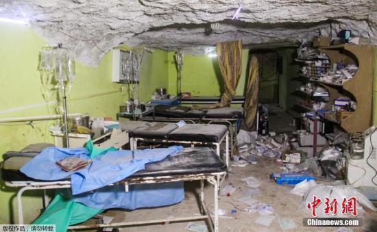 敍利亞西北部城鎮汗舍孔4月4日遭到疑似化學武器攻擊,據傳造成包括兒童在內的約100名平民喪生,還有數百人身體不適。圖為遭襲的醫院。