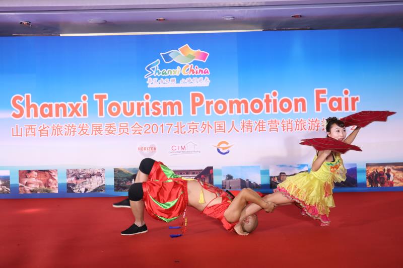 此外,為了讓在場嘉賓更深入地瞭解山西,會議現場在循環播放英文版山西旅遊宣傳視頻的同時,還進行了山西民舞《掛紅燈》、山西民歌《親格蛋下河洗衣裳》、晉劇《大登殿》、秧歌《賣高底》、二人轉《歡歡笑笑》、剪紙、麪點藝術等山西傳統表演,精彩的演出贏得了現場掌聲不斷。
