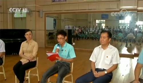 10月27日,十九大代表、海南瓊海市嘉積中學的舞蹈老師顏業岸一回到學校,就來到他和同學們每天排練時的舞蹈教室,向大家傳達十九大精神,讓在場的200多名師生倍受鼓舞。