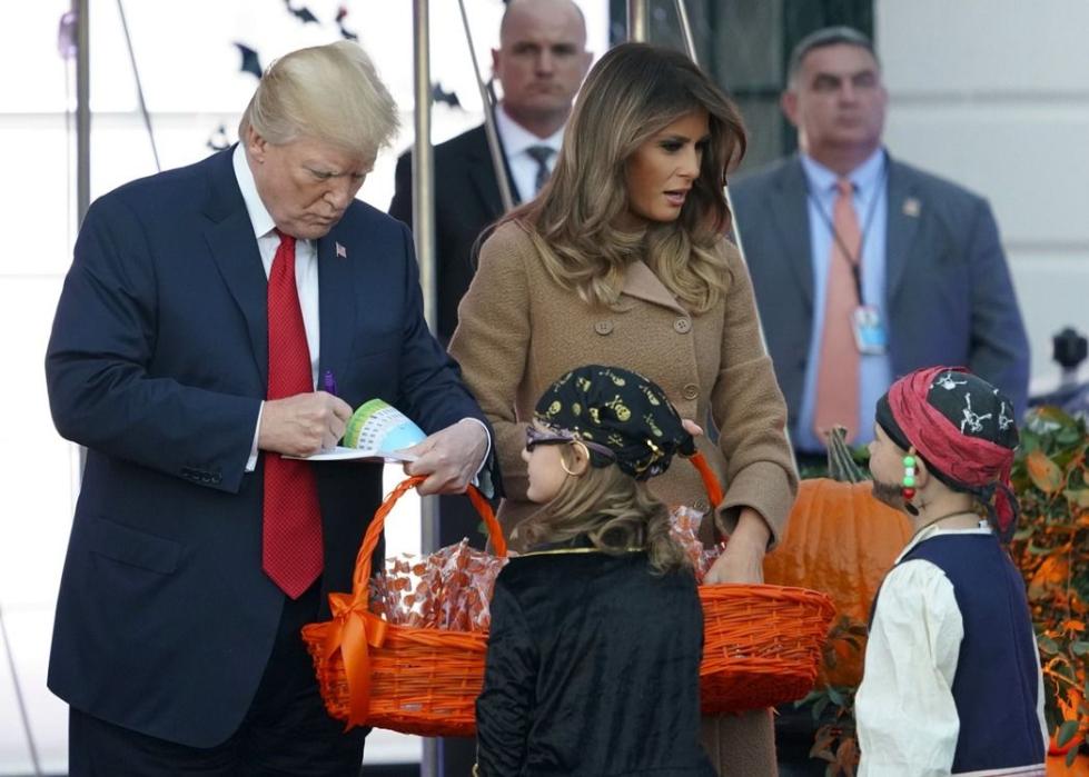 特朗普30日晚間與第一夫人梅蘭妮亞參加白宮萬聖節活動時,極力試圖揮去“通俄門”陰影,當記者提問選舉團隊遭起訴時,特朗普僅揮了揮手,沒有多加回應。(編譯/海外網 孫蒙)