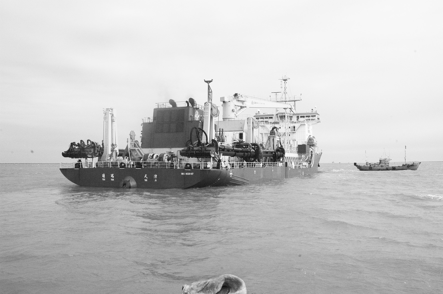 工作中的“通遠”輪緩緩而行,只有泥艙中泥漿隆隆翻滾的聲音在提醒《環球時報》記者,“神器”此時此刻正在翻江倒海。姜滿介紹説,近年來隨着吹填造陸任務的增加,這些從海底吸出的淤泥也成為“搶手貨”,“通遠”輪可以在靠近海岸的地方,通過船頭的艏吹裝置連接管線,將泥艙內疏浚物輸送至上千米外的吹填區。