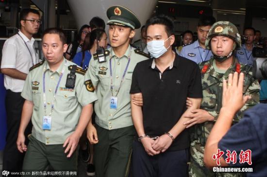 資料圖:特大集資詐騙案犯罪嫌疑人蘇某被我國公安從柬埔寨金邊押解回南寧。圖片來源:CFP視覺中國