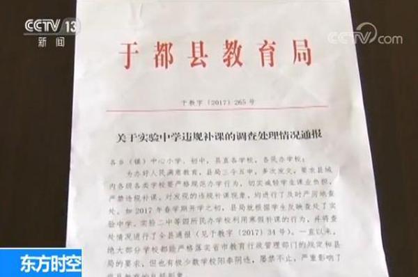 舉報事件過去二十多天後,9月27日,央視新聞報道,于都縣教育局已對實驗中學等4所民辦學校違規補課、收費給予了全縣通報批評,要求學校清退違規收取的相關費用,取消對負有領導責任的有關學校校長師德及年度考核評優資格。