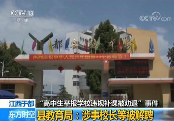 “從內心講,這個學生(的做法)搞得我很惱火,”被解聘的于都縣實驗中學原執行校長王南昌説,“我們是補課了,但沒有收費……如果我們不補課,很多孩子得外面找培訓機構補課。”
