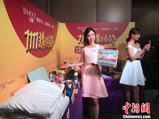 11月1日,一年一度的“雙11”購物節即將到來,台灣各大電商平台陸續開始暖身,看直播掃碼打折、購物送手機等各類活動為購物節預熱。圖為Yahoo奇摩當天在台北為今年“雙11”購物節活動舉行記者會。中新社記者 楊程晨 攝