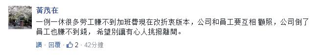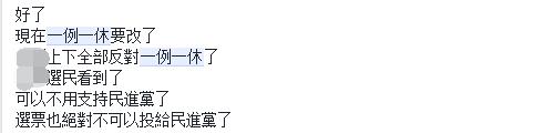 但更多是罵聲:“不是號稱最進步的‘立法’嗎?原來只是個笑話 ”“台灣全部反對‘一例一休’不用支持民進黨了”;