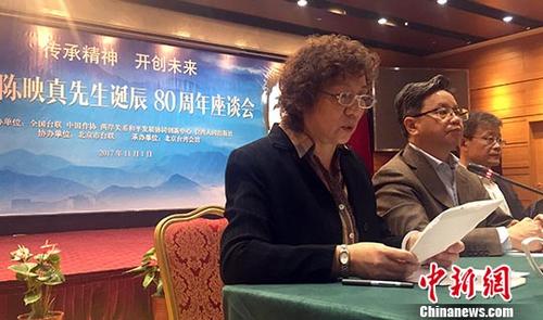 11月1日,“紀念陳映真先生誕辰八十週年座談會”在北京台灣會館舉辦。陳映真夫人陳麗娜(左1)在會上提出,希望在台灣成立陳映真紀念館,讓台灣人不要忘記台灣文學中的愛國主義傳統。中新社記者 路梅 攝