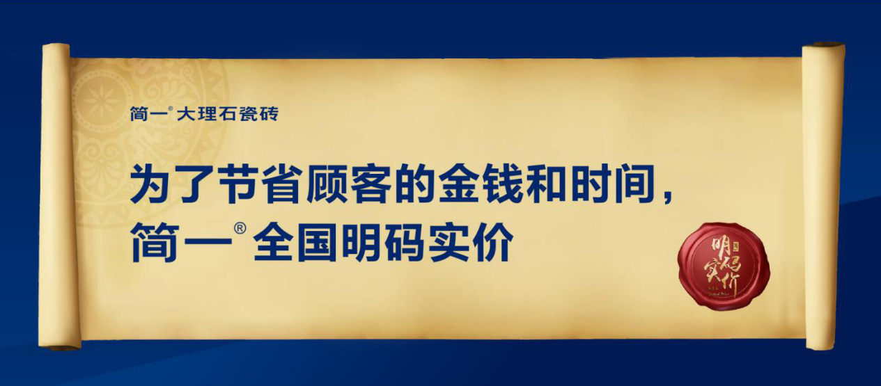 這從它的定位看得出來,簡一是國內首家定位為高端大理石瓷磚的品牌。戰略定位下,簡一廣告語在2015年年末更改為“高檔裝修,不用大理石,就用簡一大理石瓷磚。”這是以產品為主訴求的廣告語。