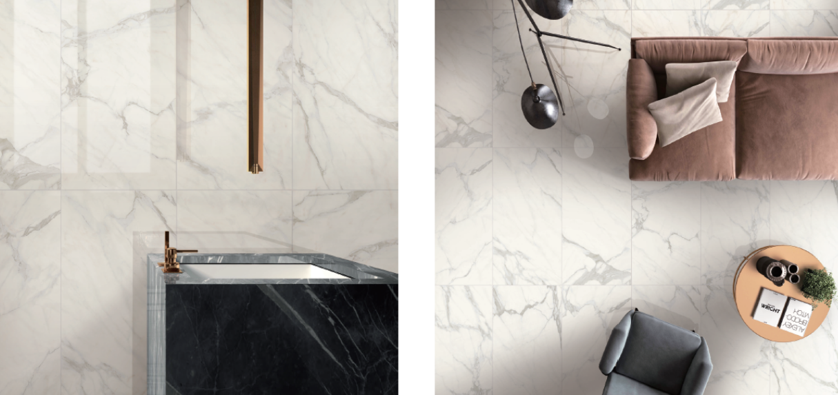 今年6月,簡一隆重上市大板大理石瓷磚。因為大板紋理延續、接縫少、整體感強,地產商、工程商和高端設計師青睞於應用在公共區域或幕牆。工程渠道,將再次成為簡一的香餑餑。