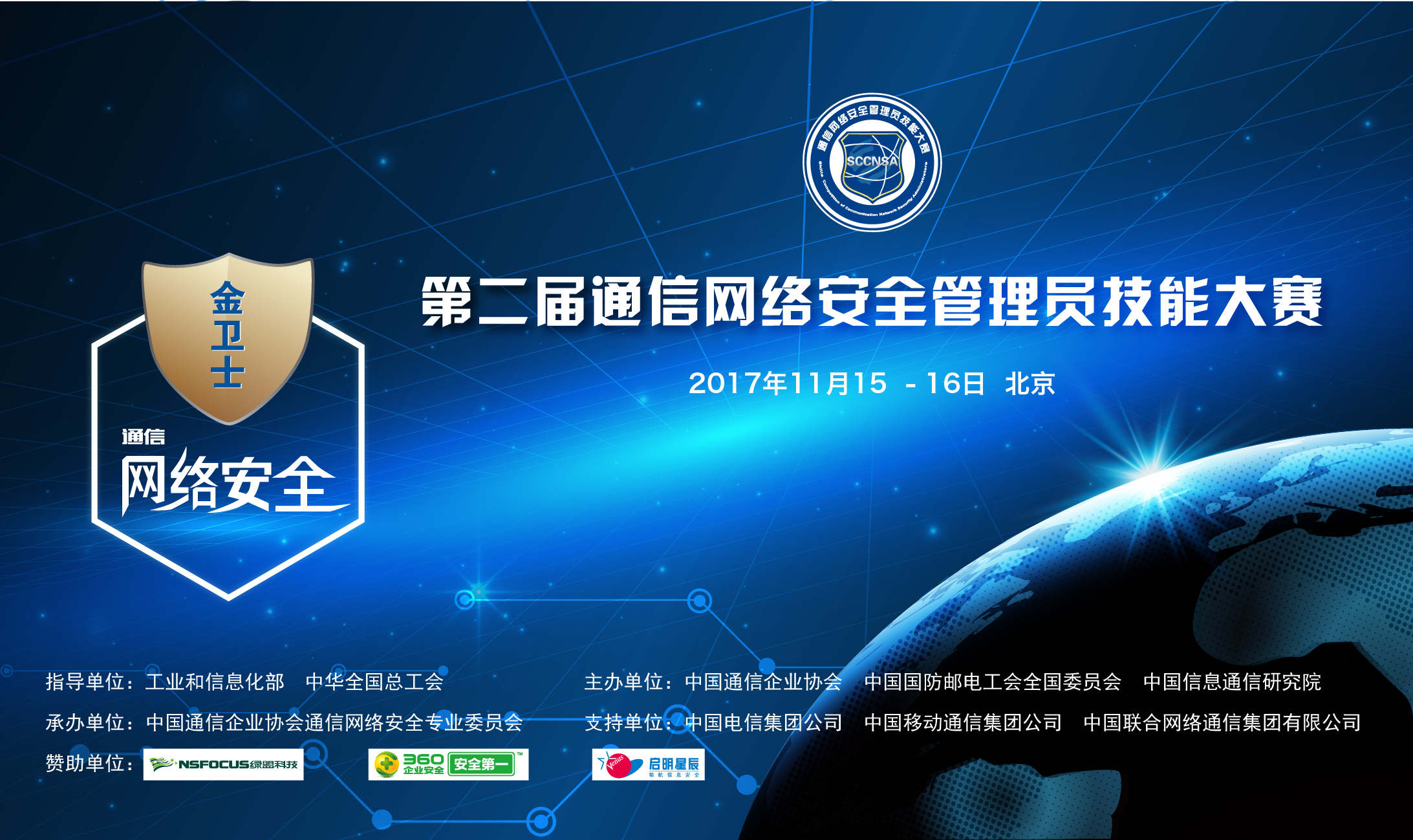 為貫徹《網絡安全法》,積極落實《國家網絡空間安全戰略》,堅持新發展理念,為建設網絡強國提供有力支撐,加強國家安全教育,增強電信和互聯網行業人員國家安全意識,推動互聯網、大數據、人工智能和實體社會政治經濟活動融合過程中的關鍵保障能力建設,進一步促進基礎電信運營企業建設高水平的網絡安全專業技術人才隊伍,切實提升其安全防護綜合實力,在工業和信息化部、中華全國總工會的寶貴支持和指導下,中國信息通信研究院、中國通信企業協會與中國國防郵電工會全國委員會聯合舉辦了“2017第二屆通信網絡安全管理員技能大賽”。中國通信企業協會通信網絡安全專業委員會負責大賽的具體組織實施工作。