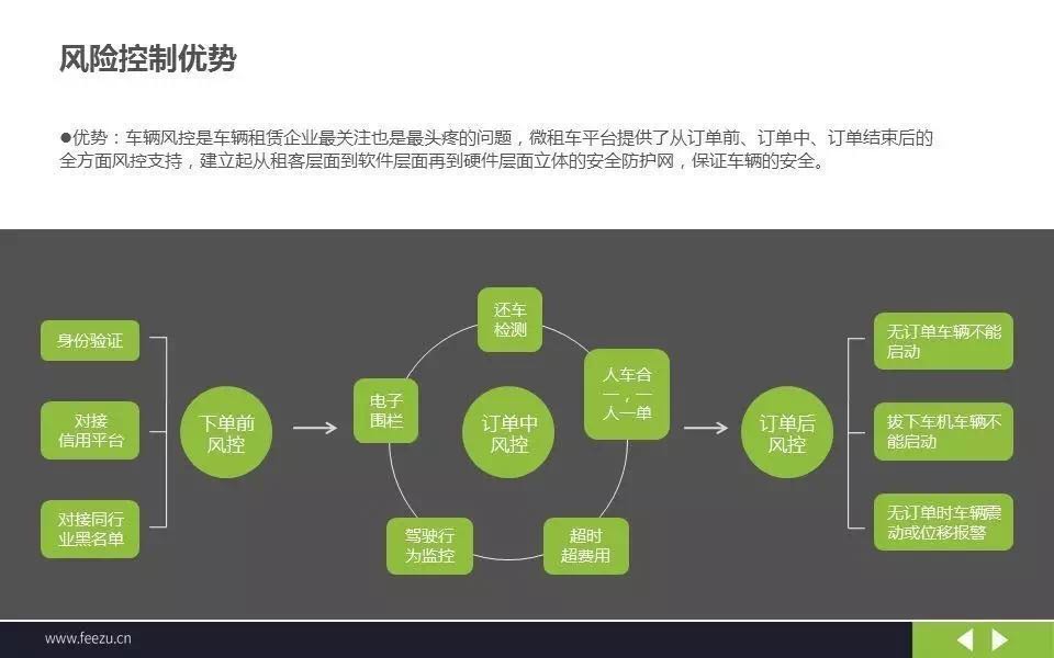為達到全方位風控的目標,易微行建立了從用户層面到軟件層面再到硬件層面立體式安全防護網,保證從訂單前、訂單中、訂單結束後的全流程安全。例如用户註冊時,平台可通過對接公安系統、芝麻信用、行業黑名單進行三重身份比對;易微行自行研發的車載智能終端硬件設備可採集車輛運營數據,監視並分析用户的駕駛行為;對於用户駕駛中的嚴重違規行為,系統可發出警告,甚至通知運維人員實施車輛的遠程控制。易微行的系統平台每季度都會進行近乎實戰的黑客安全攻防演練,目前已完善升級1300餘項安全配置,配得上世界級的風控表現。