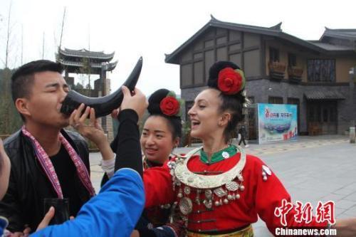 這位來自美國的女孩步履輕盈地跳着國家級非物質文化遺產名錄——錦雞舞,舞蹈結束後圍觀的眾人紛紛感嘆跳得好並喊着:“鎮長,可以跟你合影嗎?”中美用流利的中文回答:沒問題!這是記者近日在貴州省丹寨縣萬達小鎮的所見所聞。