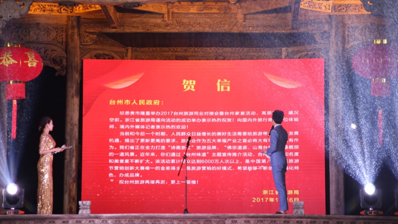 浙江省旅遊局也就此次活動的成功舉辦向台州市人民政府發來賀信,賀信中,浙江省旅遊局還向國內外旅行商及各位體驗師、境內外媒體記者表示熱烈歡迎。賀信還提到,當前和今後一個時期,人民羣眾日益增長的美好生活需要給旅遊帶來了重大發展機遇,提出了更高的要求,旅遊業作為五大幸福產業之首,在新時代大有可為、大有作為。浙江省正在全力打造“詩畫浙江”旅遊品牌,“佛宗道源、山海台州”是最靚麗的一道風景。