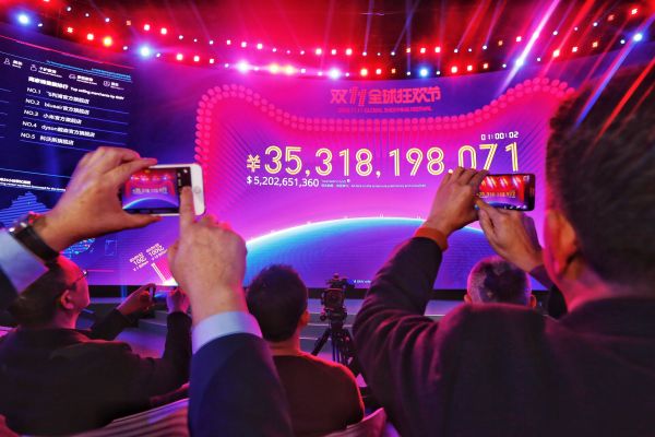 阿里巴巴的“雙十一”促銷是世界最大的購物活動。2009年11月11日的首次“雙十一”交易額還不到1億元,但到7年後的2016年猛漲到1207億元。其規模達到美國感恩節之後“剁手星期一(Cyber Monday)”的5倍。2017年參加阿里巴巴促銷的企業和品牌超過了14萬個,比2016年增加40%。其中,海外企業是2016年的5.5倍,增至6萬家。據悉,阿里巴巴旗下的菜鳥網絡等中國的物流行業將配備300萬人負責配送工作。