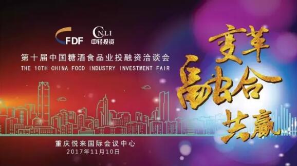 由全國糖酒商品交易會辦公室支持、中國輕工企業投資發展協會主辦的“第十屆中國糖酒食品業投融資洽談會”將於11月10日下午在重慶悦來國際會議中心舉辦,本次投洽會的主題為“變革、融合、共贏”。