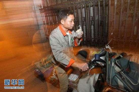 每天早上八九點鐘,亞運村附近的消費者總會在這一時間段收到蘇寧的快遞。為了保證這個時間點,任建輝和亞運村站點的其他同事,每天清晨6點多從家裏出發,不到7點就早早來到亞運村蘇寧快遞點,對接天還沒亮就到來的送貨車,碼貨、分貨、掃描、入賬。準備工作做好後,7點半不到,任建輝就騎上電動車,安慧北里、大屯裏、慧忠北里……大街小巷地開始送貨。特忙的時候,送完當天的訂單就已經晚上11點多,第二天6點多再起牀,繼續裝車送貨,處於忙碌的節奏中。
