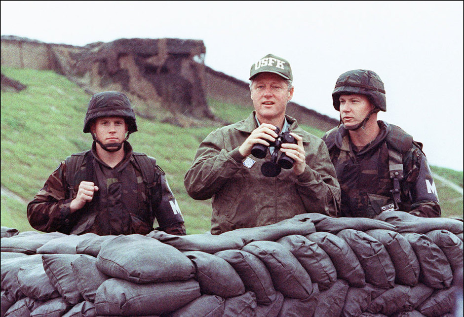 1993年7月,上任半年的克林頓總統也來到“非軍事區”。1993年克林頓訪問時,到訪了板門店共同警備區,並踏上了距離朝鮮只有一步之遙、曾在朝鮮戰爭停戰後雙方用來交換俘虜的“不歸橋”。那座橋曾被朝韓用來交換戰俘和叛逃者,稱那裏是“地球上最嚇人的地方”。