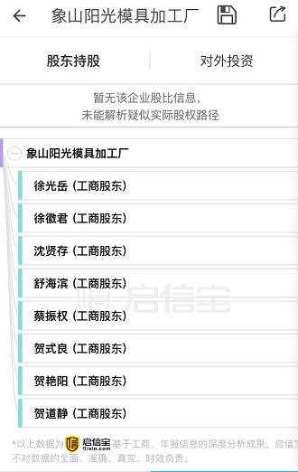 環球網記者發現,經查閲工商資料,作為合力模具曾經的關聯方並涉嫌同業競爭的公司,也即寧波雄志模具有限公司,在2016年4月被合力模具的實際控制人施良才親屬對外轉讓時,其受讓方為自然人沈賢存;而此人也曾是象山陽光模具加工廠的股東,該公司已經被吊銷但並未註銷,而當時香山陽光模具加工廠的股東中也包括施良才親屬的賀道靜等人。