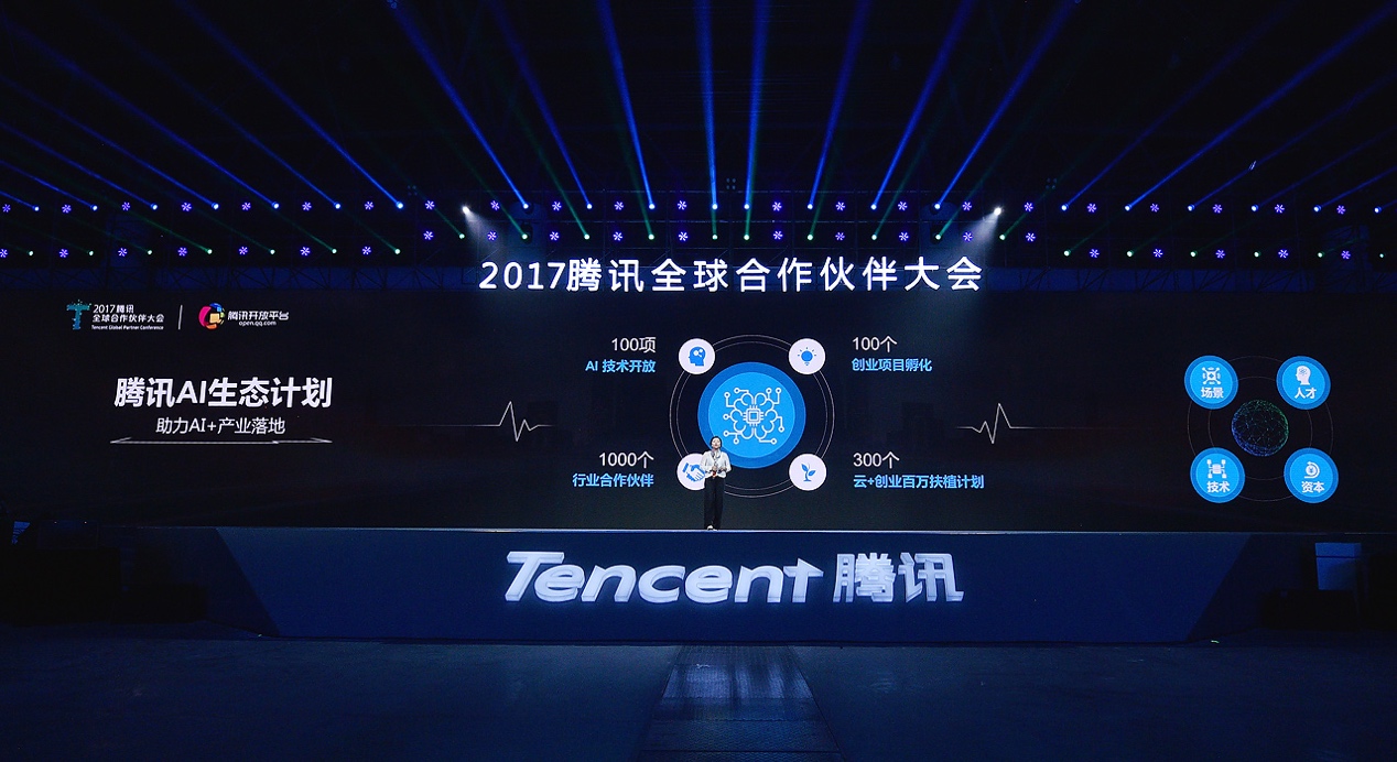 騰訊公司首席運營官任宇昕在今年的大會上表示,AI戰略是騰訊的戰略重點,一方面騰訊組建了公司級的AI實驗室,並且在海外也開始有一定的佈局。“過去一年中,很多公司談到AI,會表示‘all in AI’,騰訊是‘AI in All’。”