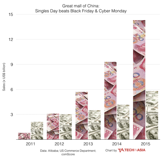 2017年的天貓雙11即將到來,面對巨大的商機,外媒也開始紛紛向本國的商户奔走呼喊:商機在中國,中國的天貓雙11比美國的“黑五”和感恩節的銷售額加起來還要多得多。