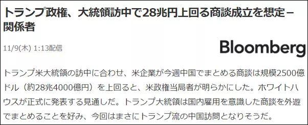 彭博社稱,當日另一筆大單是阿拉斯加州政府、阿拉斯加天然氣公司與中投公司、中國銀行和中石化共同簽署的關於在阿拉斯加聯合開發液化天然氣的協議。美國政府此前發佈的消息稱,這一協議將涉及最多430億美元的投資,建設期間將在美國創造最多1.2萬個工作崗位,併為中國帶來更多的清潔能源。