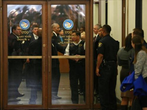 據報道,8日上午10點,奧巴馬身穿深色外套和白襯衫,從他位於芝加哥南部的家中出發前往芝加哥市區的理查德•戴利中心,履行陪審員職責。
