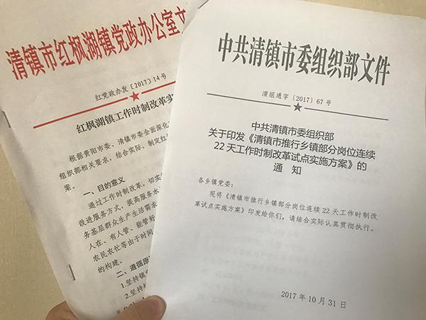 調研結束後,清鎮市委組織部開始草擬改革方案,幾易其稿,今年10月20日,《清鎮市推行鄉鎮部分崗位連續22天工作時制改革試點實施方案》(以下簡稱:《實施方案》)正式敲定。