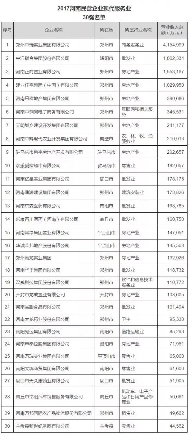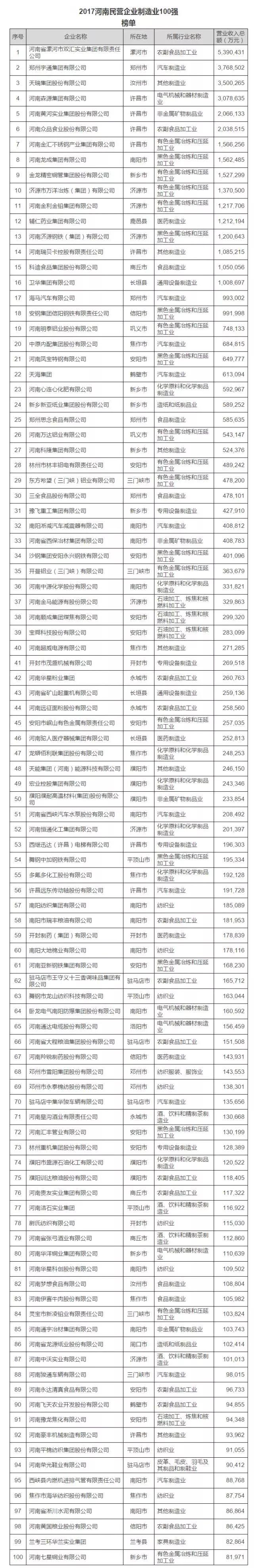 當天同時還發布了2017河南民營企業製造業100強榜單、2017河南民營企業現代農業100強榜單、2017河南民營企業現代服務業30強榜單。