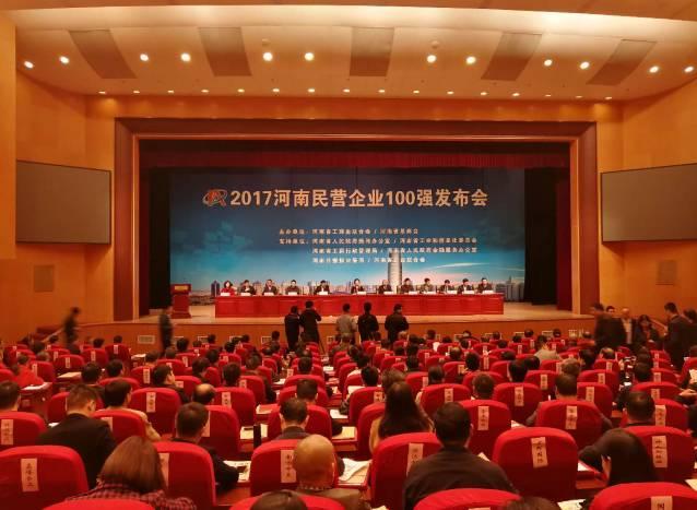 11月8日上午,2017河南民營企業100強發佈會在鄭州黃河迎賓館舉行,河南省漯河市雙匯實業集團有限責任公司以539.04億元的營業收入總額名列榜首,鄭州中瑞實業集團有限公司、鄭州宇通集團有限公司分別以415.50億元和376.85億元的營業收入分列第二、三位。