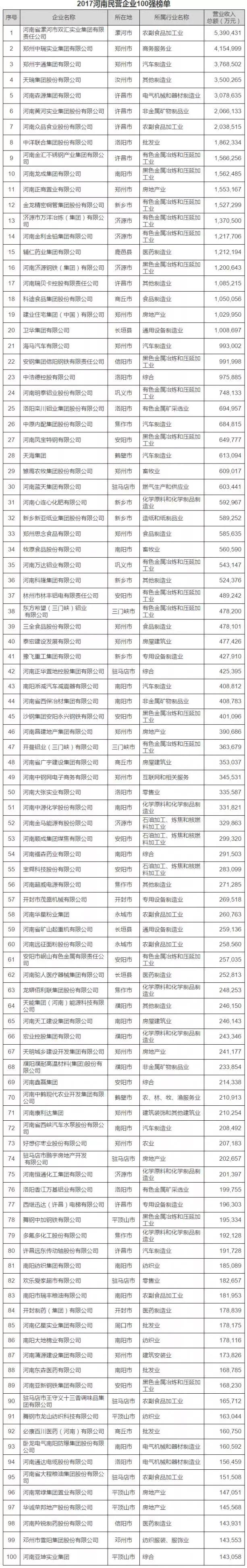 今年是省工商聯連續第五年發佈民營企業100強榜單。省工商聯在2016年度上規模民營企業調查問卷基礎上,將參與上規模民營企業調研營業收入前100位企業排序,稱為“2017河南民營企業100強”。