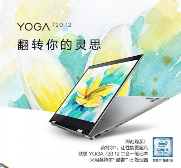 其中,YOGA 720 12新品筆記本電腦,標誌性的360°轉軸,韌性翻轉,多模式無縫切換,流線型12.5英寸機身設計,輕薄有型,採用英特爾i5酷睿處理器,蘇寧易購第一時間開售,售價5999元。
