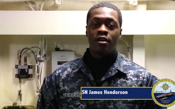 亨德森是伊利諾伊州芝加哥人,於2015年12月開始在海軍服役,在2016年4月前往諾福克軍港報到。