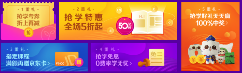 每年一度的“剁手狂歡節”雙11將至,各大電商的各種宣傳以及優惠活動令人眼花繚亂,那是不是該冷靜一下,考慮為自己的大腦充充電,和三五好友來一場知識軍備競賽呢?雙十一活動期間,海量優質課程平台滬江網校發起“雙十一搶學大促”,平台上數千門優質好課限時優惠五折起,更有折上再減搶學專享券、京東卡、搶學免息等五重好禮供助攻。
