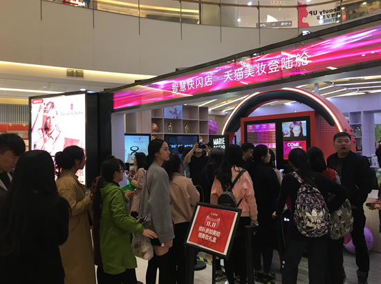 天貓雙11開始2小時,服飾品牌通過線下門店派單的門店數為去年3.5倍,總計派單量約增長兩倍。就在昨晚,位於上海的資生堂快閃店和男裝集合快閃店裏已經人頭攢動。今年天貓雙11,服飾美妝大牌紛紛在全國各地開出系列新零售快閃店,店內集成虛擬試衣、虛擬試妝、無人零售等眾多黑科技,掃描店內陳列的新品,即可實現在線成交。