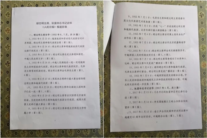 “這是1955年胡志明主席訪華時的報紙,我們費了些勁找到的,一共16期。”