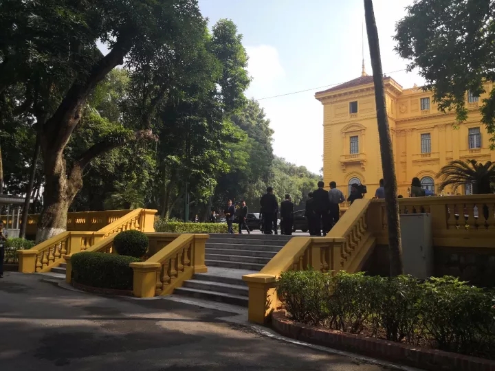 他們邊走邊聊。道路兩旁的芒果樹是胡志明主席親手種植的,這裏也是他每天散步和鍛鍊的地方。阮富仲説,一位中國教練在這裏教他太極。